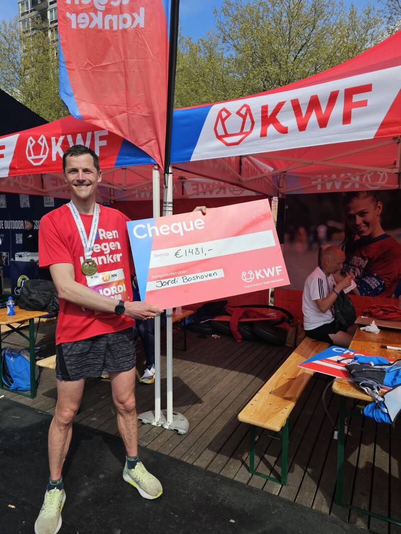 Nu liep Jordi ook nog eens voor KWF. Jordi heeft in twee weken een bedrag van € 1431 opgehaald. Nogmaals supertrots. En ik wil degenen die daar aan hebben bijgedragen hartelijk bedanken.